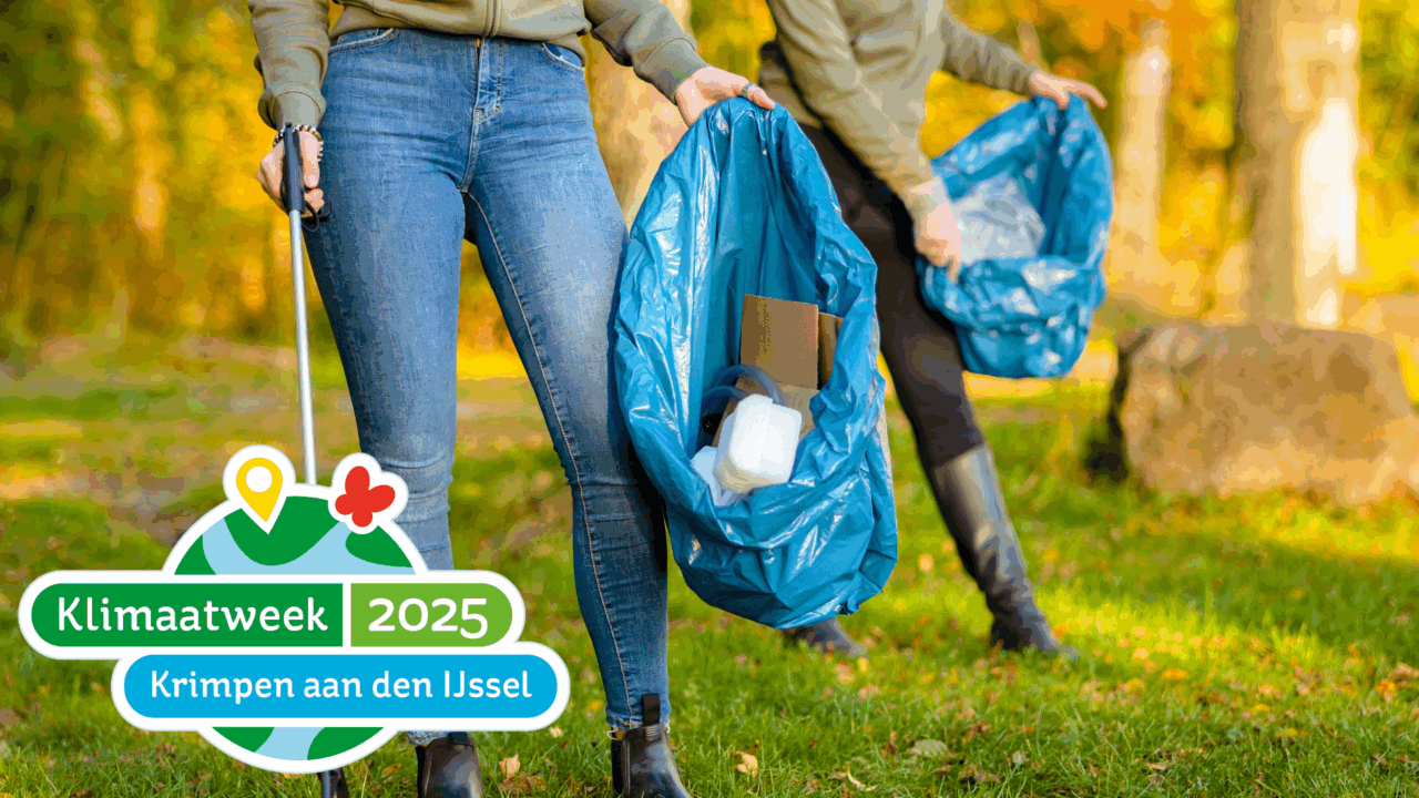 In de Klimaatweek ruimt KrimpenSchoon elke dag 1,5 kilometer van Krimpen op. Sluit je aan op een dag naar keuze om zwerfafval te prikken.